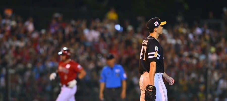 さらに1死満塁の場面でボイトを迎えると、カウント1-1からの3球目に投じたスライダーを左中間に運ばれ、痛恨の満塁弾を浴びた。大関はマウンド上で顔をしかめた。