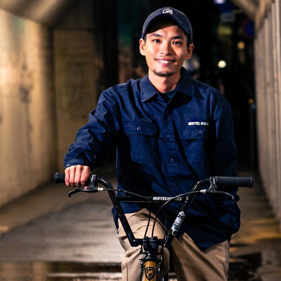 これまで世界を舞台に輝かしい戦歴を残し、長きにわたりトップ選手として活躍。BMXの普及を目指し、全国各地でのワークショップやイベントの実施、国際審査員などその活動は多岐にわたる。MOTELWORKSブランドの創始者として、BMXを通して人生の大切なコトを伝えたいという想いを胸に今も走り続ける。