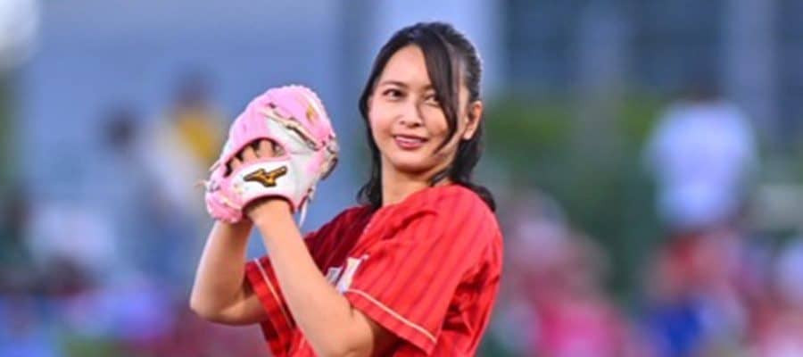 女優の加藤夏希さんが始球式