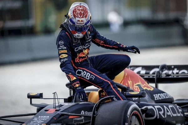 第9戦スペインGP「レース終盤まで表彰台を狙えるポジションを走行していましたが、タイヤ戦略を外して5位でフィニッシュし(※その後、ペナルティで10位に降格)、悔しそうにマシンを降りるマックス・フェルスタッペン。ドライバーズ王座の5連覇は難しい状況ですが、まだまだ勝つことをあきらめていません」(撮影/熱田護)