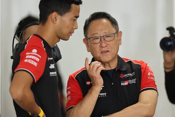 富士スピードウェイTPCテスト「ハースのウェアを着たトヨタの豊田章夫会長が姿を現わすと、ドライバーやエンジニアが次々と集まって談笑し、すごくいい雰囲気でした。F1は人と人とのつながりで盛り上がっていくスポーツ。ハースとトヨタの提携はいい方向に進んでいると確信しました」(撮影/熱田護)