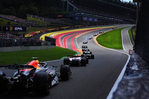 第13戦ベルギーGP「スパ・フランコルシャンの名物コーナー、オールージュに向かっていく角田選手。レッドブルに移籍したものの、中団グループに埋もれて、なかなか順位を上げられないという苦しい展開が続いています。まさに今の角田選手を象徴するカットです」(撮影/桜井淳雄)