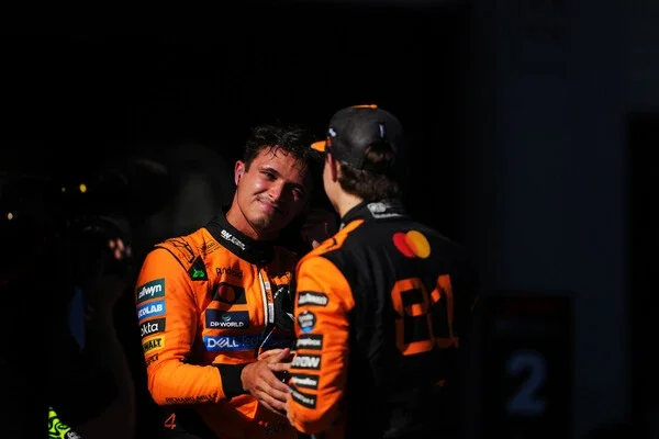第11戦オーストリアGP「レッドブルリンクでのチームメイト対決を制したランド・ノリスはレース後、2位に終わったオスカー・ピアストリに笑顔で握手を求めました。王座争いを繰り広げるマクラーレンのふたりは驚くぐらいピリピリしていません」(撮影/桜井淳雄)