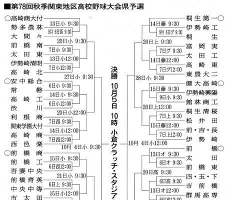 第78回秋季関東地区高校野球大会群馬県予選の組み合わせ