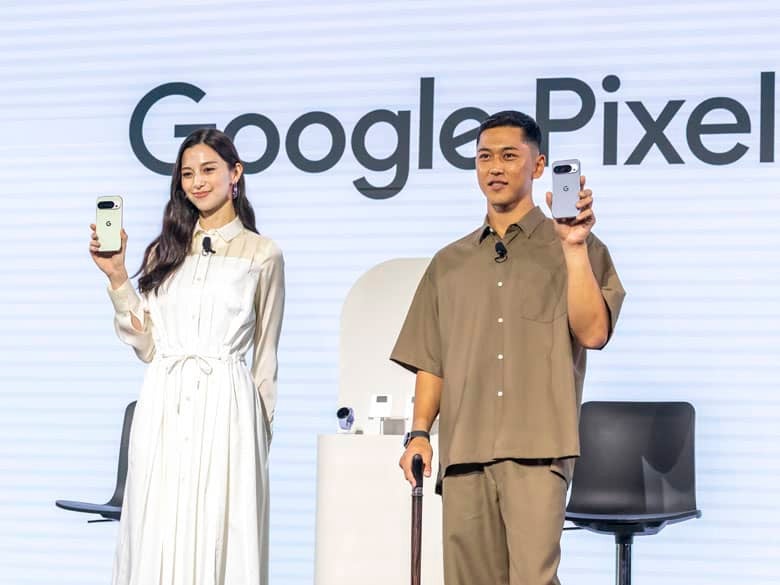 競技生活でも私生活でも活用イベントはGoogle Pixel新製品事前説明会からスタート。最新のGoogle AIを搭載したスマートフォン、スマートウォッチ、イヤホンの紹介が行われたのち、これまでもアンバサダーを務めてきた小田が、新たにアンバサダーに就任する、女優でモデルの中条あやみとともに#TeamPixelの一員として登壇した。