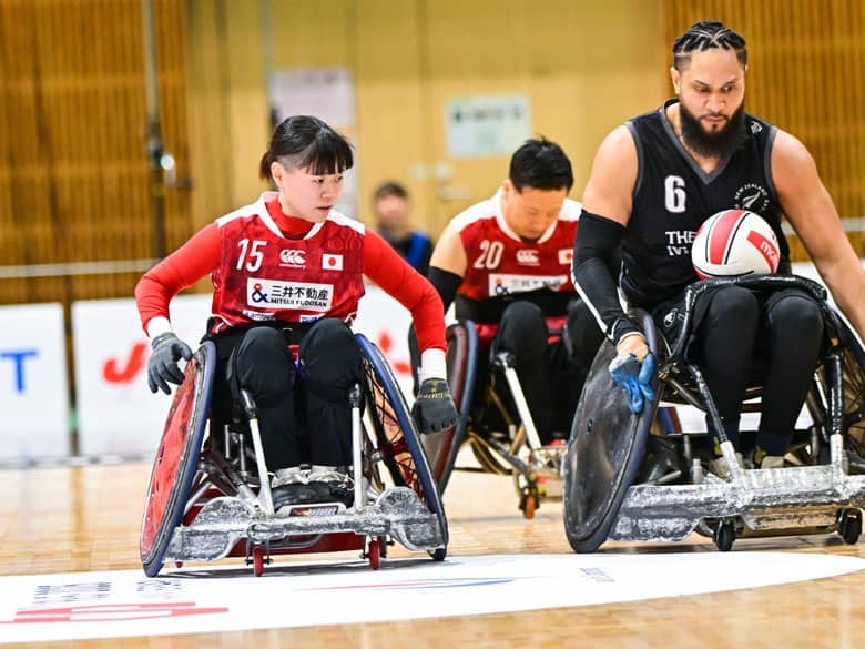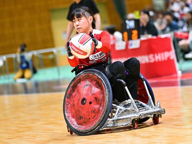 この7月、愛知・名古屋2026アジアパラ競技大会の会場で行われた「2025ジャパンパラ車いすラグビー競技大会」。日本代表が優勝したこの大会のエキシビションゲームに、もうひとつの日本代表が出場した。海外チームとの試合経験を積むために結成された「エキシビションチーム」だ。22歳の新人、西村柚菜(にしむら・ゆうな)は、障がいの持ち点3.5クラスの女性プレーヤーとして縦横無尽にコートを走った。