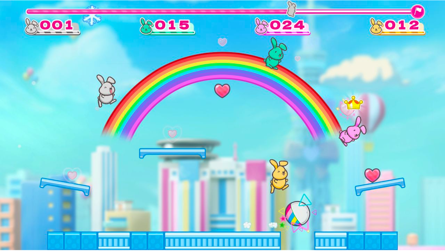 プレイヤーはラッピーを操作し、ステージ上に散らばるハートを集めて勝敗を競う。3つのステージの合計スコアで順位が決まるシンプルなルールながら、対戦アクションとしての駆け引きも盛り込まれている。