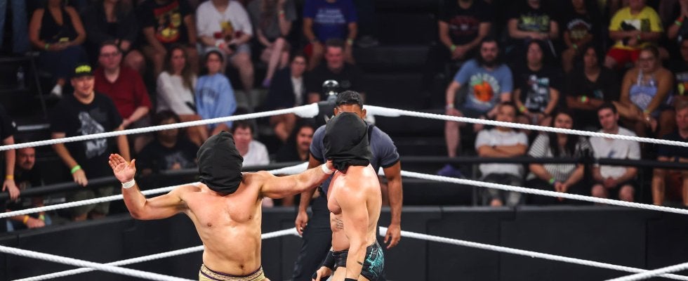 8月26日(日本時間27日)、フロリダ州オーランドのWWEパフォーマンスセンターで行われたレクシス・キングとマイルズ・ボーンのブラインドフォールドマッチ(両選手が頭に袋をかぶって戦う試合)は珍プレーの連続。視界を完全に遮断された状態で、あまりにも馬鹿げた戦いが繰り広げられた。