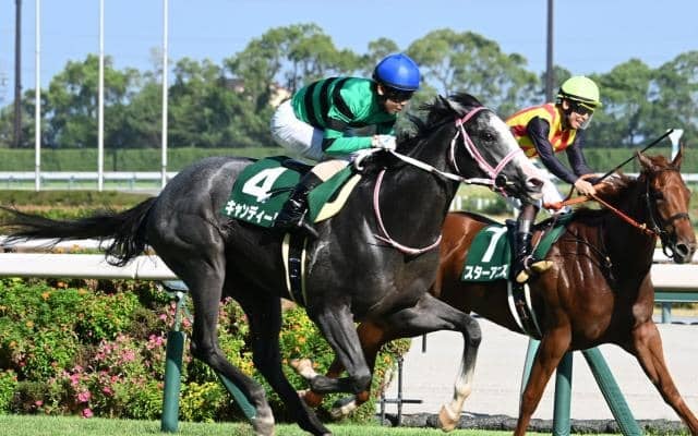 31日、中京競馬場で行われた第1回中京2歳ステークス(2歳・GIII・芝1400m)は、道中は中団につけ、直線で外から脚を伸ばして最後の叩き合いを制した北村友一騎手騎乗の6番人気キャンディード(牡2、栗東・松下武士厩舎)が、一旦先に抜け出した1番人気スターアニス(牝2、栗東・高野友和厩舎)にクビ差をつけ優勝した。勝ちタイムは1分19秒4(良)。