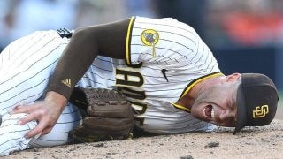 マウンドに倒れ込んだアダム。今季絶望の見通しとなった(C)Getty Images ドジャースを追いかけるパドレスに衝撃…
