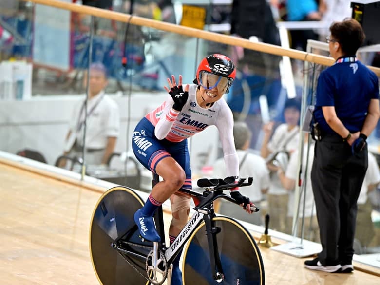 2021年の東京2020パラリンピックで自転車競技の舞台となった伊豆ベロドローム。当時のポスターやユニフォーム、公式マスコットが飾られた会場で、4年前にロードで金メダルを獲得した女王が世界新をマークし、話題をさらった。