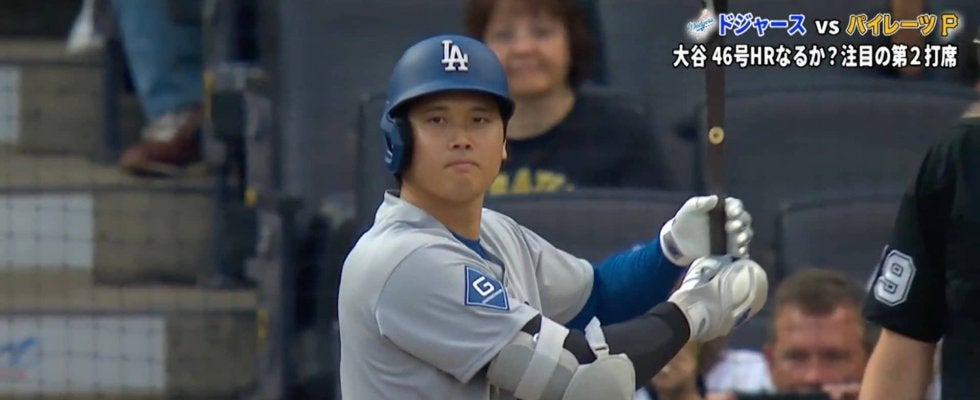 ドジャースの大谷翔平投手がパイレーツ戦に「1番・DH」でスタメン出場。第2打席で7試合ぶりとなる46号ソロを放った。その直前に見せていた“笑み”が、視聴者の注目を集めていた。