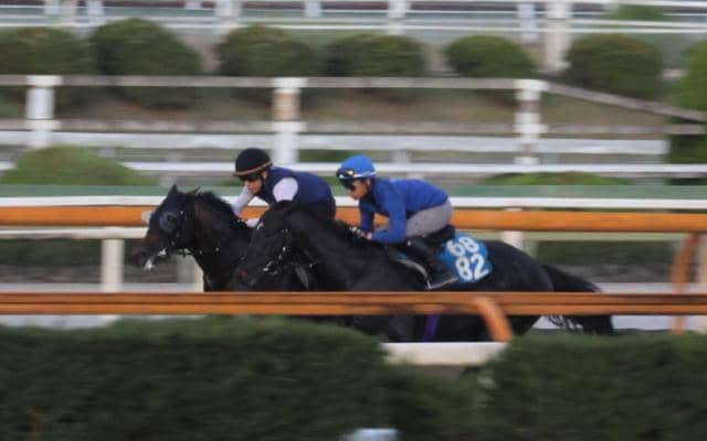 CWで来週のチャレンジCへ出走予定のグランヴィノスとの併せ馬。6F標識で4馬身ほど追走する形だったが、3コーナー手前ではその差も2馬身ほどのところまで詰めていた。4コーナーを回って、最後の直線に向くところでもまだ前との差はあったが、ギアチェンジもスムーズで追いつくだろうなという雰囲気。