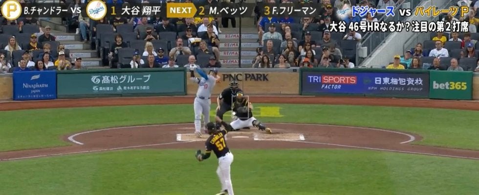 ドジャースの大谷翔平投手がパイレーツ戦に「1番・DH」でスタメン出場。第2打席で放った46号本塁打は、自身キャリア最速となる打球速度193キロの弾丸ライナー。その衝撃に、相手投手や野手も“絶望”のリアクションを見せた。