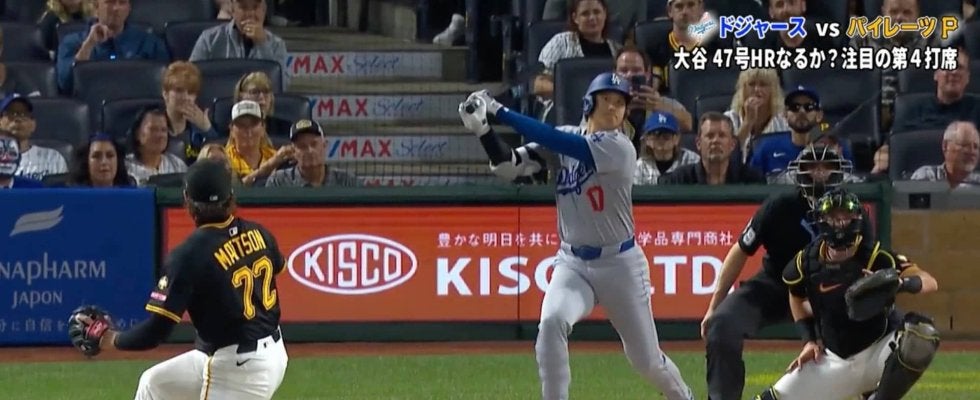 ドジャースの大谷翔平投手がパイレーツ戦に「1番・DH」でスタメン出場。第2打席でキャリア最速となる打球速度193キロの弾丸ライナーを右翼席へ運び、46号ソロをマークした大谷は、7回の第4打席でも驚異的な足を披露し、チャンスを作った。
