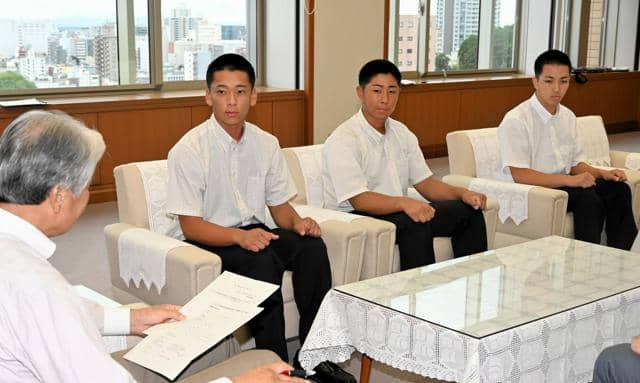 8月に阪神甲子園球場で行われた第107回全国高校野球選手権大会(日本高校野球連盟、朝日新聞社主催)に栃木代表で出場した青藍泰斗の選手らが4日、栃木県庁を訪れ、福田富一知事に大会結果の報告をした。