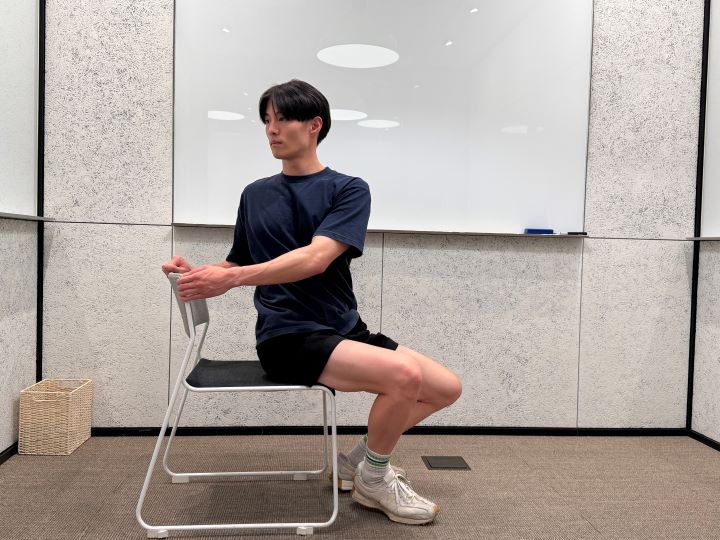 1)椅子に座って両足を肩幅に開く