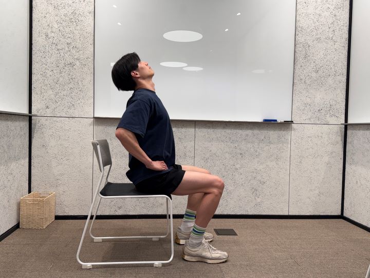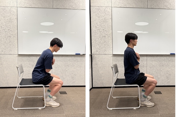 1)椅子に腰掛けて、背筋を伸ばす。