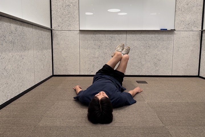 4)倒した状態で腹式呼吸