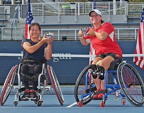 車いすテニスの全米オープン(アメリカ/ニューヨーク、ハード、グランドスラム)は日本時間6日(現地5日)、ジュニア部門の女子ダブルス決勝が行われ、松岡星空/ S・チャズ(アメリカ)組がL・ヒールド(アメリカ)/ E・ポージェス(ドイツ)組に6-0, 6-1のストレートで圧勝し優勝を飾った。