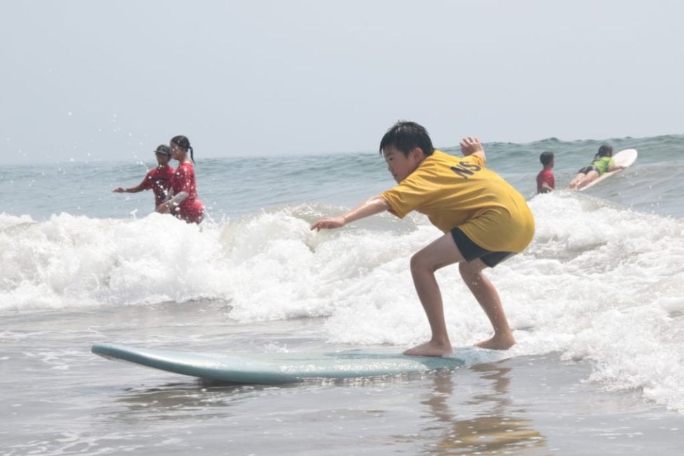 夏の日差しの下、有志の方が参加しその数は700名に達した。ビーチクリーン後は、綺麗になったビーチで子どもサーフィン体験教室が開催され、多くの子どもがインストラクター指導のもと、安全に楽しくサーフィンを体験した。