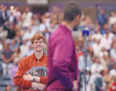 テニスの全米オープン(アメリカ/ニューヨーク、ハード、グランドスラム)は日本時間8日(現地7日)、男子シングルス決勝が行われ、第1シードのJ・シナー(イタリア)は第2シードのC・アルカラス(スペイン)に2-6, 6-3, 1-6, 4-6の熱戦の末に敗れ準優勝となり、大会連覇とはならなかった。これにより、シナーは1年3ヵ月ぶりに世界2位に後退することが決まった。
