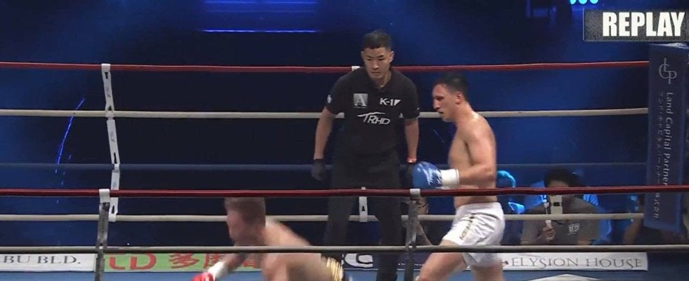 異名どおりの“ハリケーン”のような「高速バックブロー」に重量級ファイターがガードごと吹き飛ばされ、宙を舞うように前方にダイブして崩れ落ちた衝撃のKO決着。解説が「ガードしても効いてしまう」と諦めムードで話せば、ファンからも「これは止められない」「上手いバックブロー」と驚きの声が広がった。