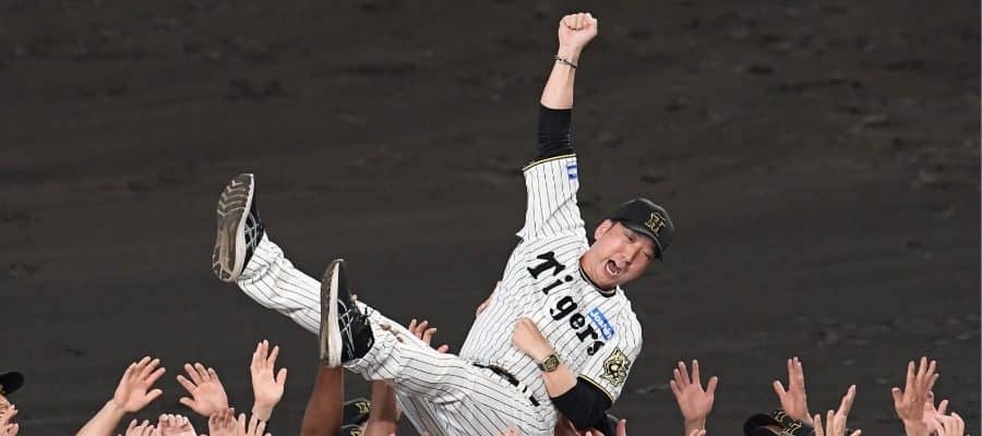 胴上げされる阪神・藤川球児監督【写真提供:産経新聞社】