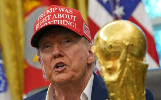 2025年8月22日、米ホワイトハウスの大統領執務室で開かれたW杯のイベントで話すトランプ大統領=AP