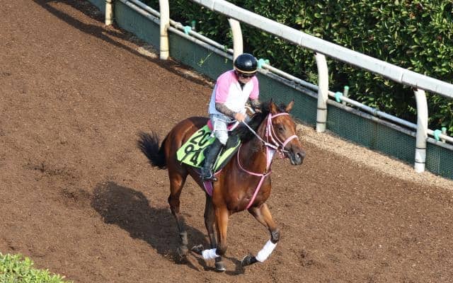 本馬について「同じインディチャンプ産駒でもタイセイボーグ(新潟2歳S2着)のような肢長体型ではなくて、こちらは幅があって、いかにもスピードタイプという感じですね」と松下武士調教師。