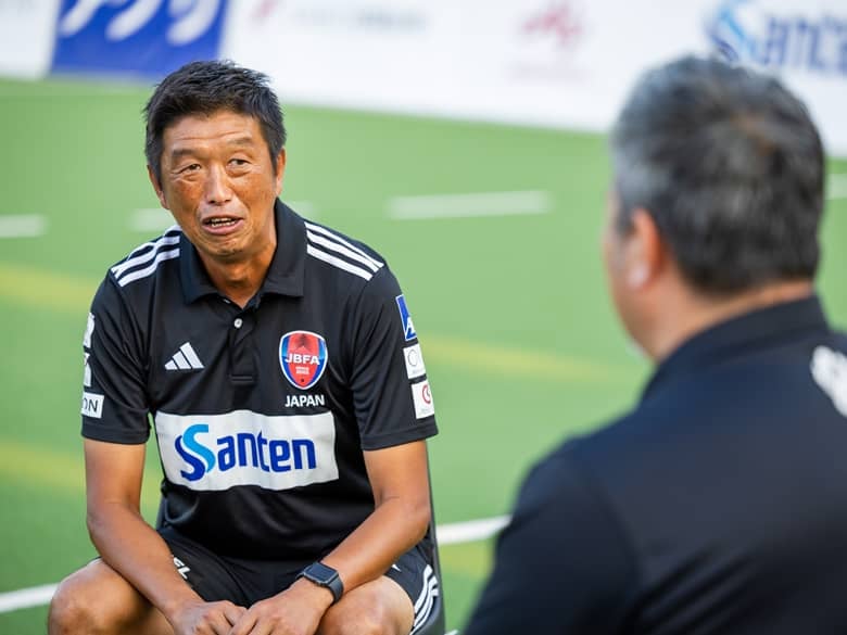 ブラインドフットボールの日本代表チームの練習にコーチとして初めて参加したときは、衝撃的でした。サッカーなのに、選手たちは、ボールを蹴れないし、止められないし、運べなかったんですよ。先天性の視覚障がいの選手はサッカーを見たことがないわけですから、仕方ない部分もあったとはいえ、それにしてもね……。選手たちには「とても代表とは呼べないよね、君たち」ってはっきり言いましたし、これは時間がかかるな、とも思いました。実際、それから2年間は、「止める・蹴る・運ぶ」の技術練習に大部分の時間を割きました。