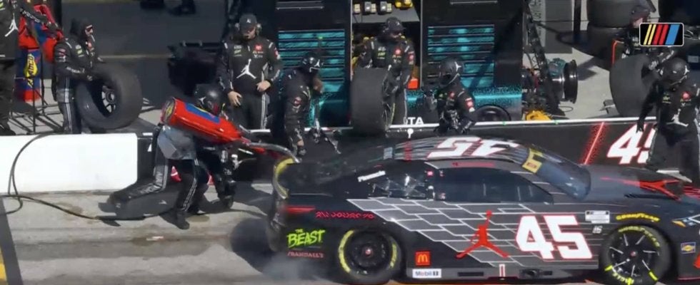 レースはステージ1が終わってステージ2の序盤、タイラー・レディックはバッバ・ウォレスと4位争いをしていた。そんななか、10号車がコース上で停車してしまい、イエローコーションが出されたことで、78周目にレディックの45号車含め、多くのマシンが一斉にピットイン。この時、順位を争っていたウォレスがピットへ入らずコース上へ残ったことで、レディックに焦りがあったのかもしれない。1秒でも早くコースに戻ろうという心理状況のなかで、ピットクルーがタイヤ交換と給油作業を急ぎ進めるが、先行していたタイヤ交換が終わった瞬間、レディックの45号車が走り始めてしまったのだ。
