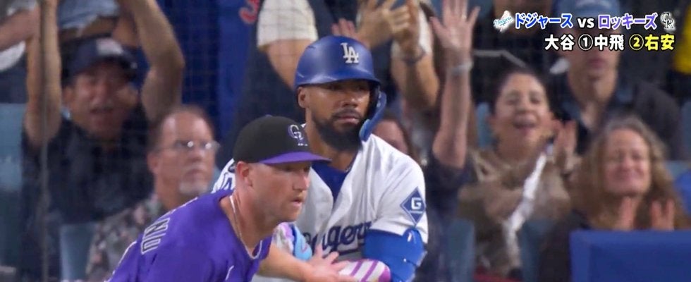 ドジャースの大谷翔平投手がロッキーズ戦に「1番・DH」でスタメン出場。ベッツのタイムリーで一塁から激走ホームインを見せた。歓喜に沸く本拠地のなかでひとり、テオスカー・ヘルナンデスが思わぬハプニングを起こしていた。