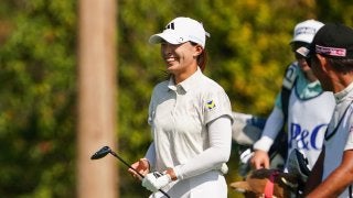 川崎春花が首位でホールアウト「ビックリしてます」 前半2ボギーからイーグル&4バーディー量産