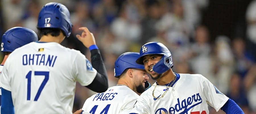 ドジャースナインとハイタッチするムーキー・ベッツ【写真:ロイター】