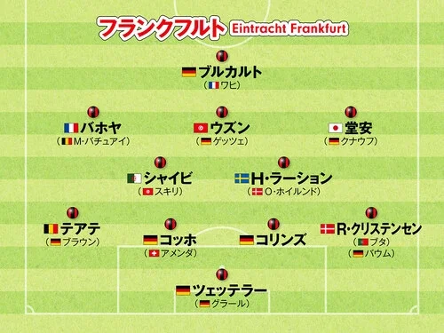 FW:ジャン=マテオ・バホヤ(ミシー・バチュアイ)、ヨナタン・ブルカルト(エリー・ワヒ)、堂安律(アンスガー・クナウフ)