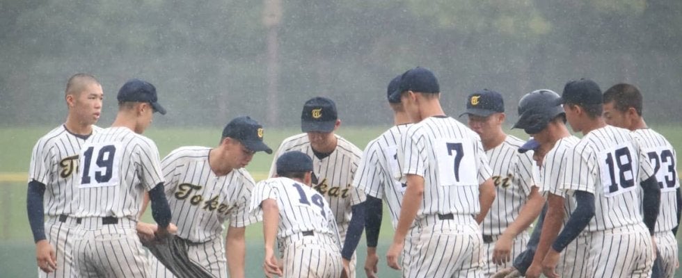 サーティーフォー相模原球場で行われている東海大相模と金沢の試合は、3回途中に強い雨が降り、一時中断となった。