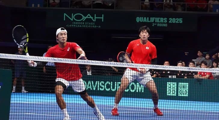 9月13日、男子国別対抗戦「デビスカップ ファイナル予選2回戦 日本対ドイツ」(東京・有明/9月12~13日)第2日を日本は0勝2敗で迎え、ダブルスの第3試合では綿貫陽介(SBCメディカルグループ)/柚木武(イカイ)が登場。ケビン・クラビーツ/ティム・プッツに3-6,6-7(4)のストレートで敗れ、ドイツがファイナル進出を決めた。