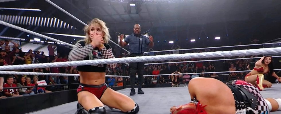 WWEの第3ブランドNXTで行われた女子タッグチーム王座挑戦権争奪トリプルスレッドマッチ。出場したのはザルーカ(ソル・ルカ&ザリア)、フェイタル・インフルエンス(ファロン・ヘンリー&ジャズミン・ニックス)、ザ・カリング(イジー・デーム&テイタム・パクスリー)の3組。大本命と見られたソル&ザリアは、まさかの凡ミスによって挑戦権を逃す結果となった。