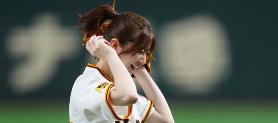 髪をポニーテールで結び、巨人のユニホーム姿で登場。野球経験はゼロだっといい、大きく振りかぶって投げた1球は三塁方向に逸れ、ノーバウンド投球とはならず。それでも笑顔で歓声に応え、見事に大役を果たした。