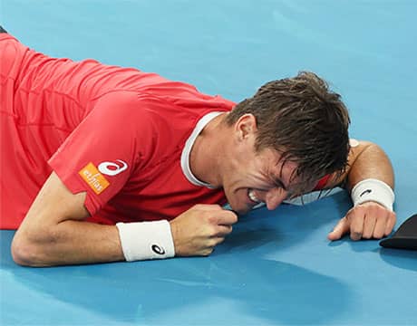 試合は1セットオールとなったなか、ファイナルセットの第1ゲームでコリニョンは痙攣で倒れ込みその場で動けなくなってしまう。それでもコリニョンはその後治療を受けプレーを続けると、終盤の第8ゲームでブレークを奪い、絶体絶命の状況から勝利を挙げベルギーに貴重な1勝をもたらした。