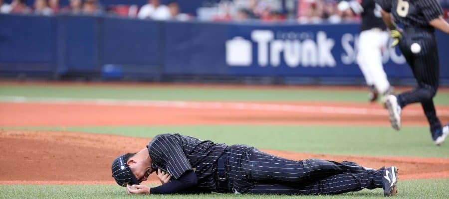 曽谷はその場でうずくまり、立ち上がることができなかった。担架に乗ってベンチ裏へ引き上げた。2死満塁となり、2番手には横山楓投手がマウンドに上がった。