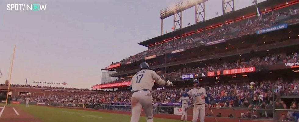 ドジャースの大谷翔平投手が「1番・DH」でジャイアンツ戦に先発出場。ベッツ内野手、フリーマン内野手らとのMVPトリオ"揃い踏み"するという最強チームならではの光景が見られた。