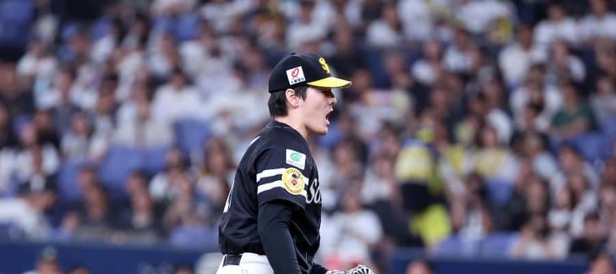 ソフトバンクの先発・有原航平投手は、3回に3点を失うも、その後は無失点に抑え試合を作った。打線は6回、野村勇内野手、海野隆司捕手、代打・笹川吉康外野手の連続タイムリーで同点に追いつくと、さらに柳町達外野手のタイムリーで勝ち越しに成功した。