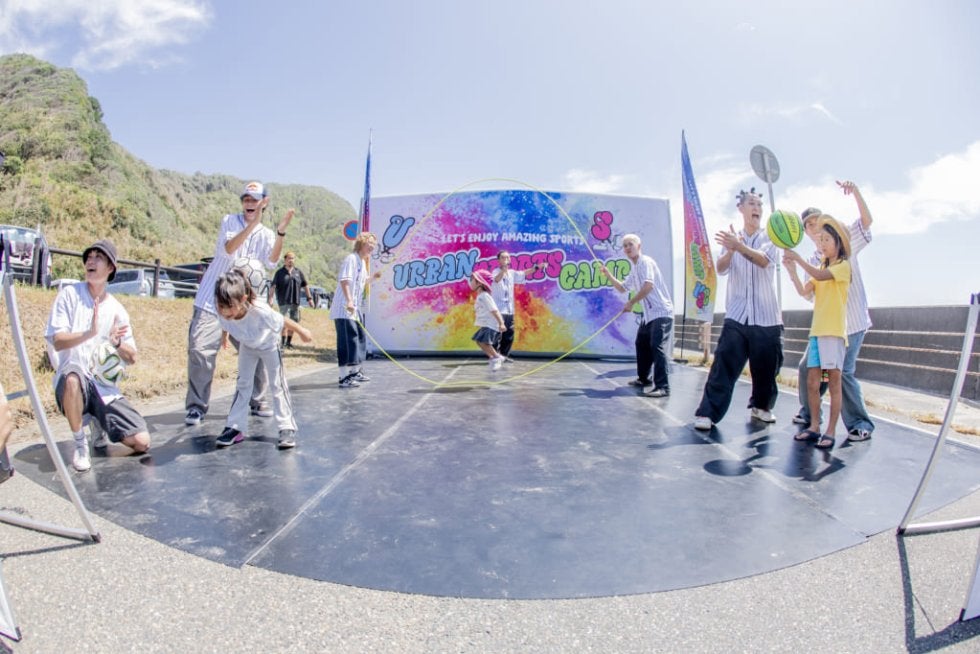 パフォーマンスが終わった後はフリースタイルフットボール、フリースタイルバッスケットボール、ダブルダッチの3競技の体験会が開催。来場した家族連れや、サーファーをはじめ、ブースへの出展やイベント関係者たちも含め、老若男女がアーバンスポーツを体験。