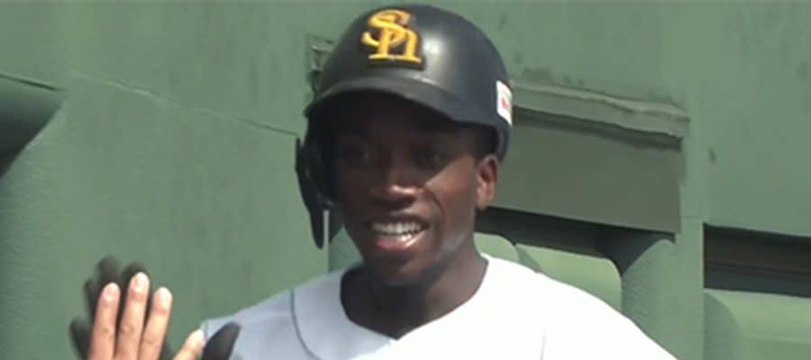 くふうハヤテ戦でランニング本塁打を放ったソフトバンクのイヒネ・イツア【画像:パーソル パ・リーグTV】