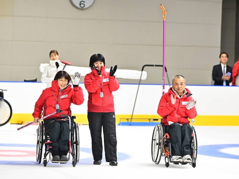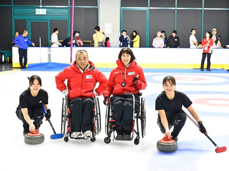 車いすカーリングのデモンストレーションで来場者を魅了したのは、ミラノ・コルティナ2026パラリンピック冬季競技大会の車いすカーリング日本代表に内定している小川亜希、中島洋治による精度の高いショット。