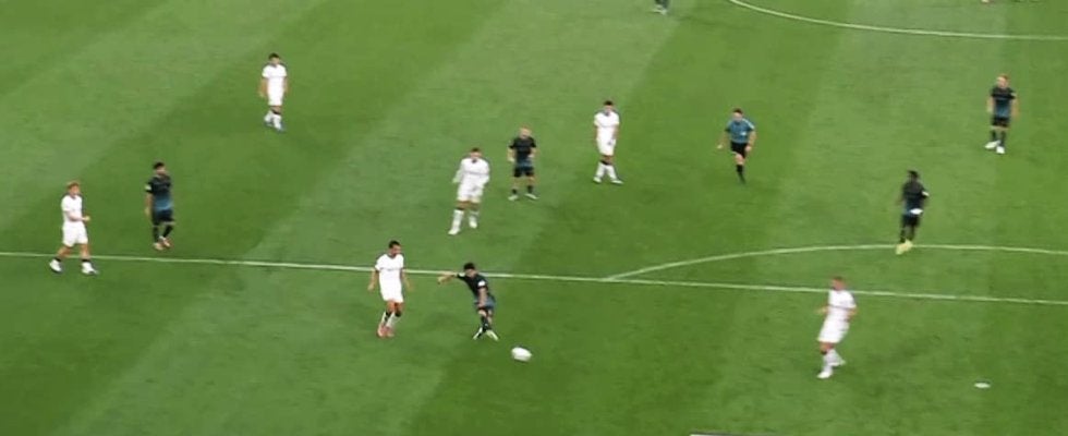 今夏にサウサンプトンからブレーメンにレンタル移籍した日本代表DFの菅原由勢が、決定機を迎えるも決め切ることができずに頭を抱えた。