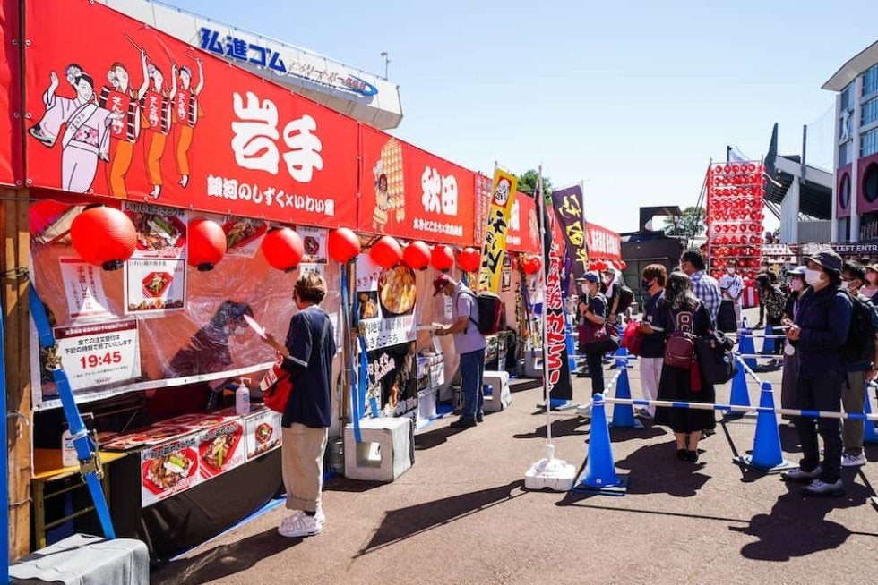 と、話すのは株式会社楽天野球団総合企画部の亀谷さんと山本さんだ。球団社長(当時の)の「東北の魅力的な夏祭りを、なんとかスタジアムで体験できないだろうか」という提案から、楽天生命パーク宮城(現:楽天モバイルパーク宮城)で楽天イーグルスの一軍公式戦が行われた2021年9月の5日間に「東北ろっけんまつり」が開催されることとなったという。