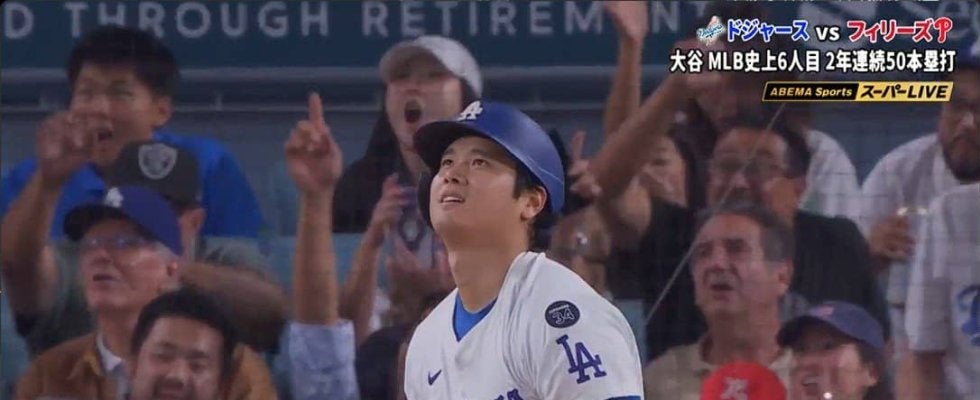 ドジャースの大谷翔平投手がフィリーズ戦に「1番・投手兼DH」でスタメン出場。第4打席で2年連続となる50号ホームランを放ち、メジャー史上初となる50本塁打50奪三振の偉業を達成した。